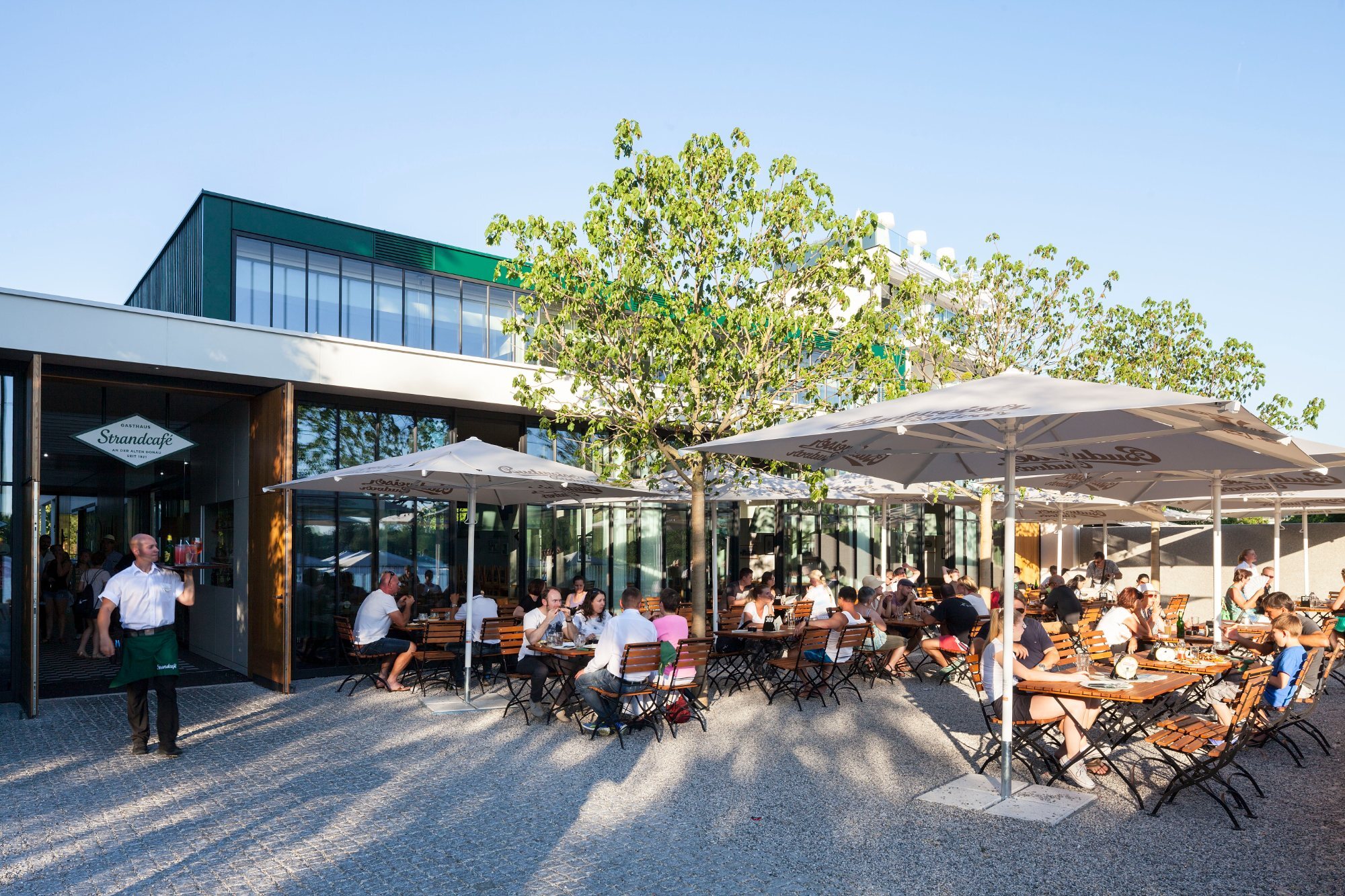 Ein Gebäude mitten im Grünen, das sich zur Alten Donau hin öffnet und damit Urlaubsflair und traditionelle Wiener Gastlichkeit miteinander vereint, war das Ziel der neuen Eigentümer des Strandcafés an der Alten Donau.